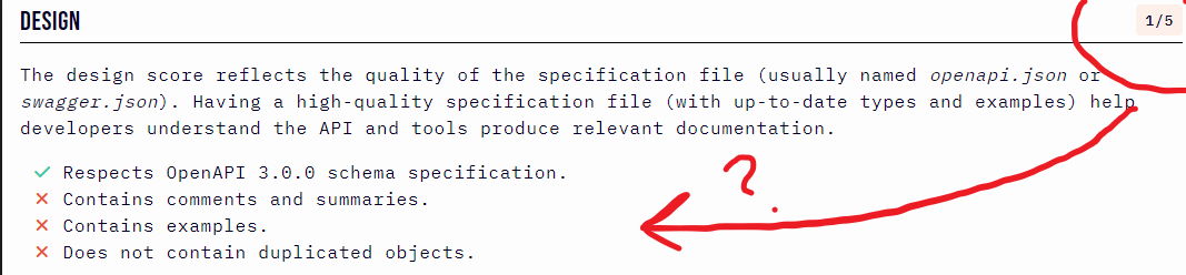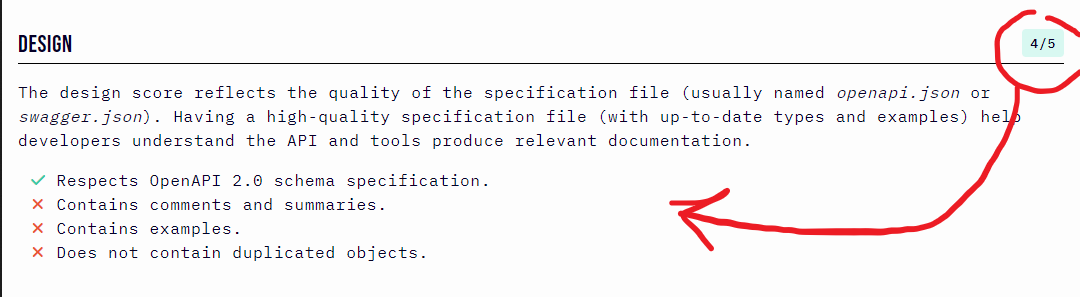 - API design compliance as measured by our OpenAPI linting (automatic)